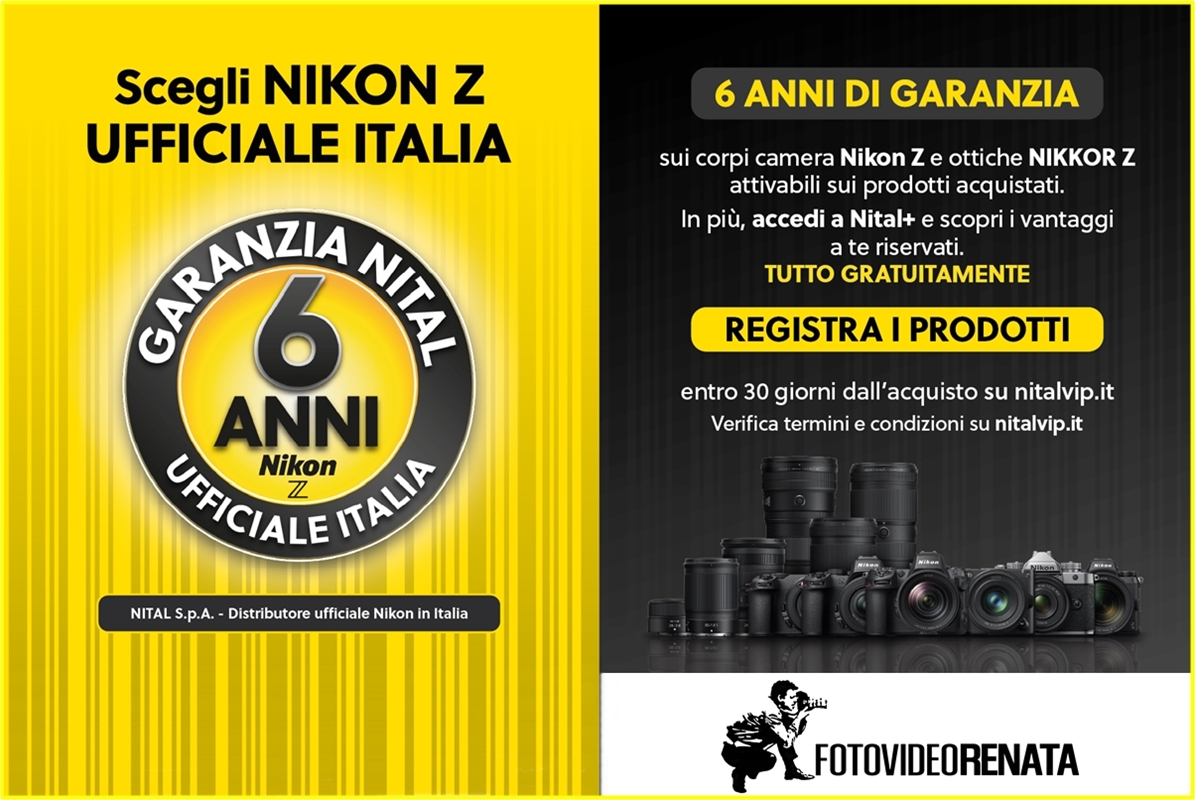 Dal 16 marzo 2026 acquistando una fotocamera o un obiettivo della serie NIKON Z verrà data gratutiamente l'estensione di garanzia a 6 anni, la promozione è valida solo nei negozi autorizzati e su prodotti ufficiali NITAL.