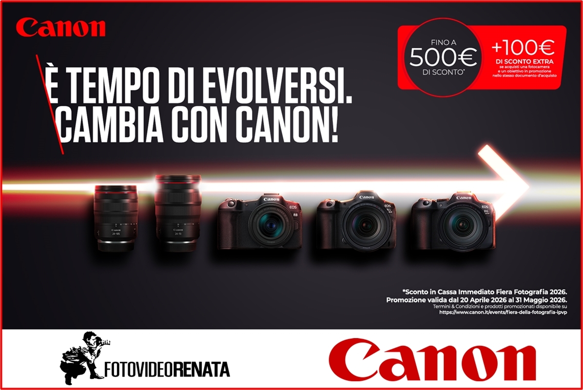 Fino al 19 Aprile 2026 CANON ti sconta in cassa euro 500,00 sulla nuovissima CANON EOS R5 Mark II in qualsiasi configurazione, solo corpo o kit. La promozione è valida solo nei negozi selezionati e con garanzia ufficiale CANON ITALIA.