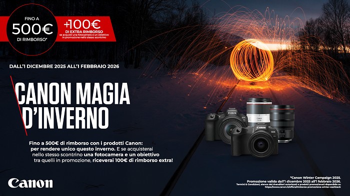 Dal 1 dicembre 2025 fino al 1 febbraio 2026 CANON ti sconta con un cashback fino a 500 euro su fotocamere, obiettivi e stampanti selezionati e...