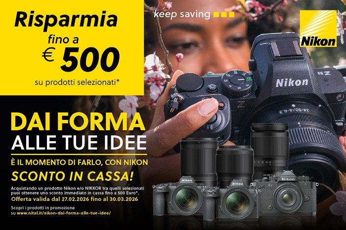 27/02/2026 - Dal 27 febbraio fino al 30 marzo 2026 NIKON ti offre tantissimi sconti in cassa su fotocamere e obiettivi selezionati, la promozione è valida solo nei negozi autorizzati e con garanzia ufficiale NITAL.