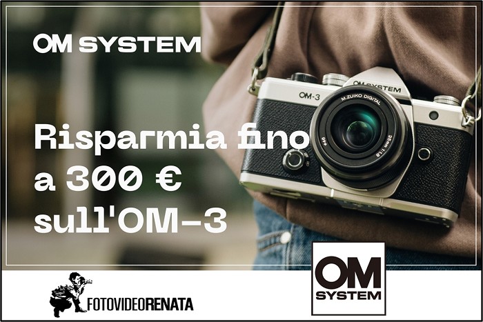 16/04/2026 - Fino al 17 maggio 2026 OM SYSTEM sconta in cassa fino a euro 300 sulla OM-3 e fino a 200 euro su ottiche selezionate. La promozione è valida solo nei negozi autorizzati e con garanzia ufficiale POLYPHOTO.
