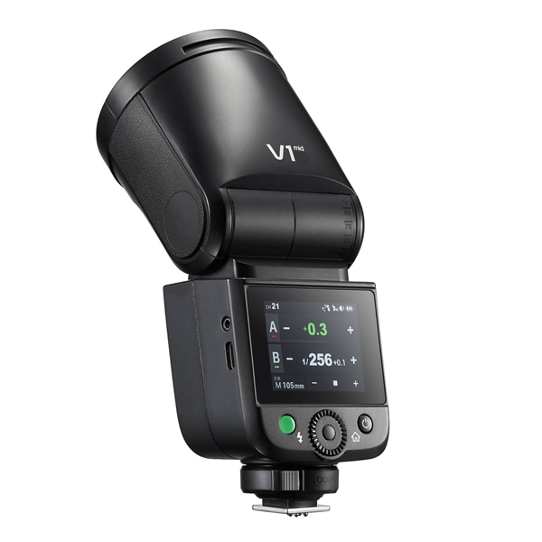 Alimentato da una batteria ricaricabile al litio da 7,2 V e 2200 mAh inclusa e con un tempo di ricarica di 1,7 secondi, il V1 mid consente 650 flash a piena potenza e una durata del flash compresa tra 1/600 e 1/20.000 di secondo. Un altro punto di forza è la lampada pilota LED da 2 W integrata con temperatura di colore 5300 K (+/-200 K) e luminosità regolabile (1-10). Gli indicatori di batteria sul pannello del display informano sul livello di carica rimanente. Godox include nella confezione il cavo di ricarica USB-C e l'adattatore.